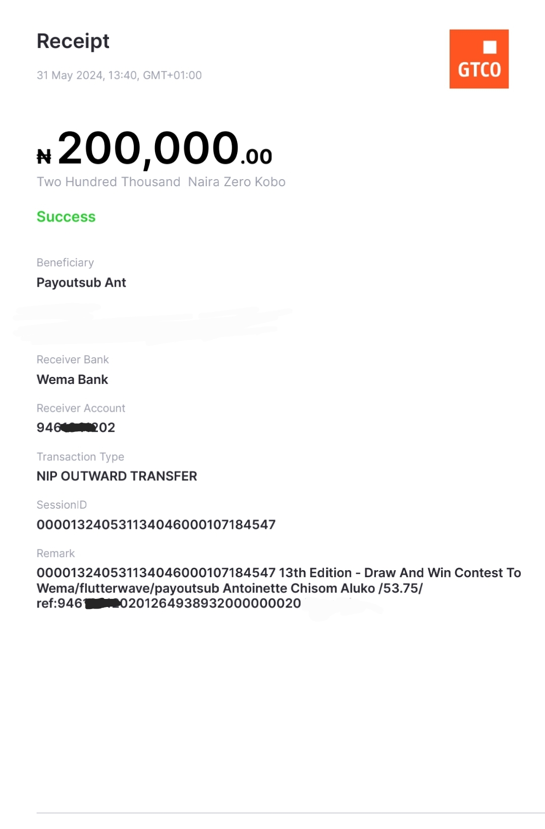 We say a big congratulations to Anthony Aluko for emerging as the 1st Runner Up of the 13th Edition - Draw and Win [Completed]