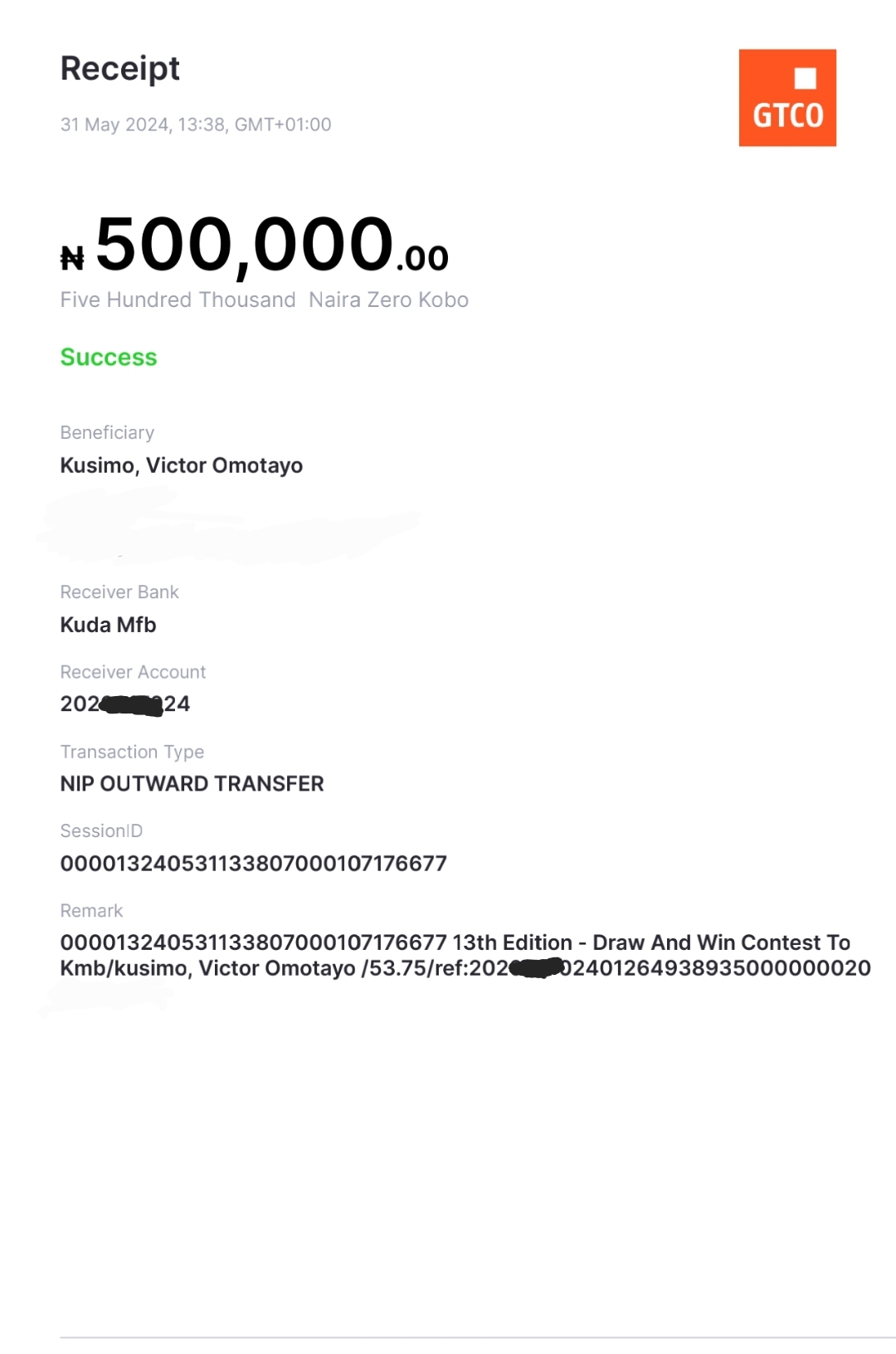 We say a big congratulations to Omotayo Kusimo for emerging as the Winner of the 13th Edition - Draw and Win [Completed]