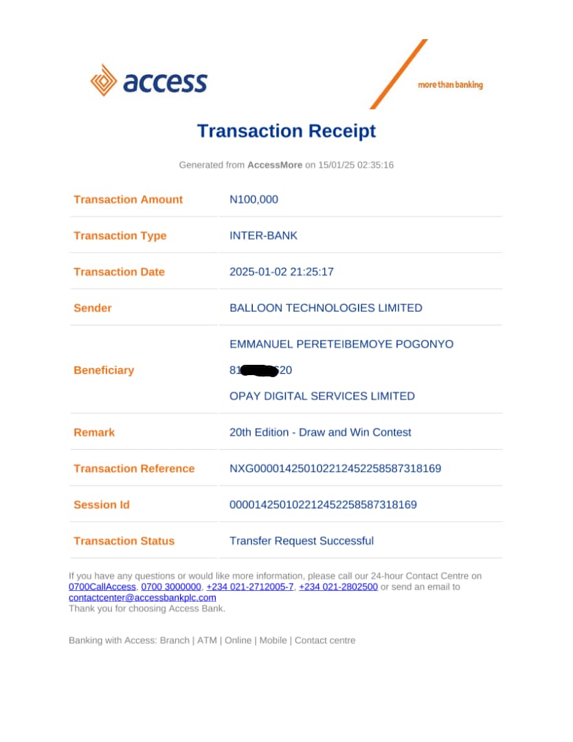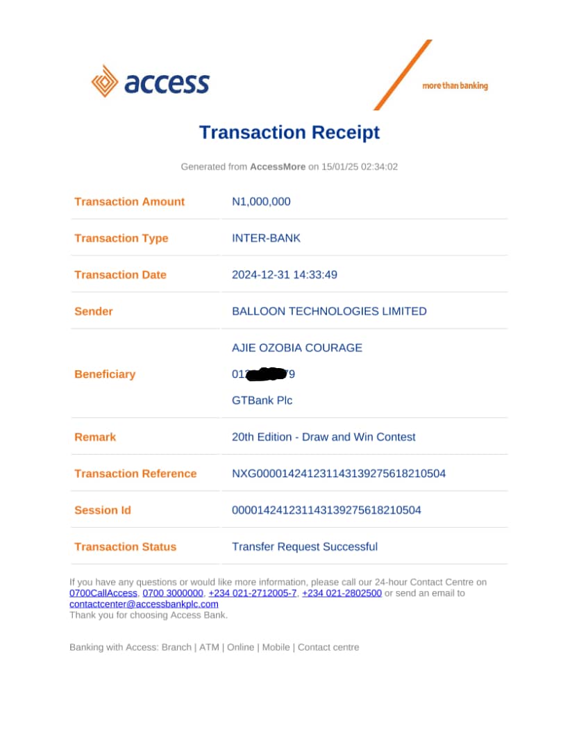 We say a big congratulations to AJIE COURAGE O. for emerging as the Winner of the 20th Edition - Draw and Win [Completed]