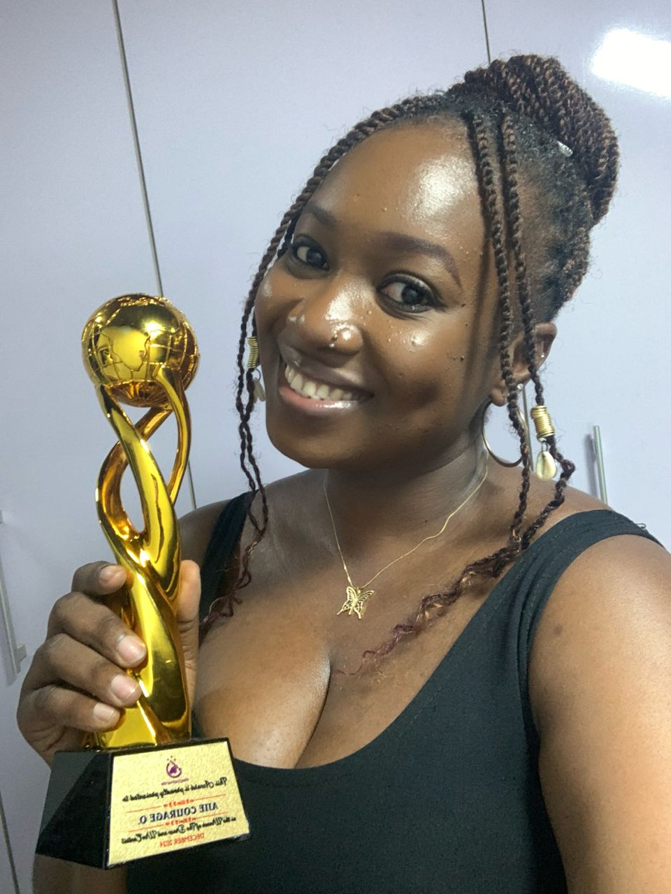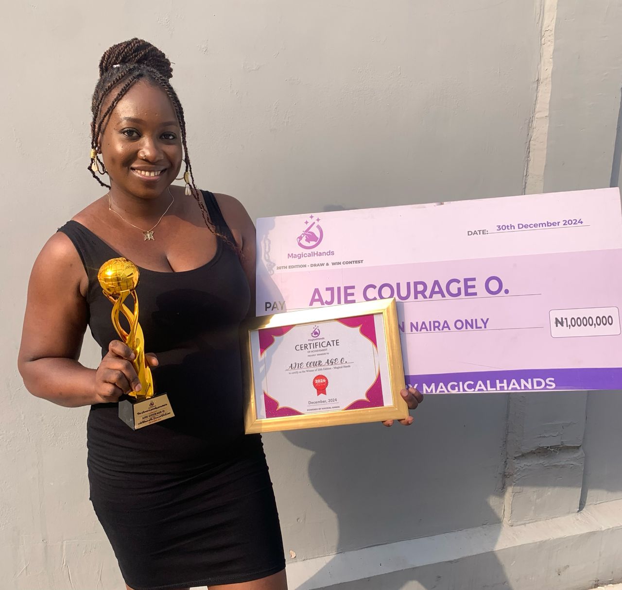 Here is AJIE COURAGE O. reaction after receiving prize money